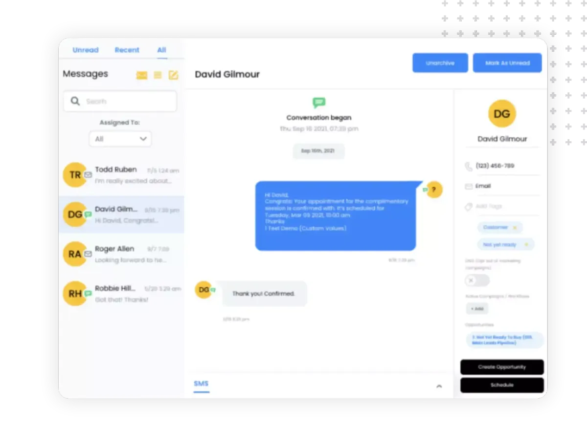 Connect with Medical leads and customers through texting, live chat, bulk messaging, Google My Business and Facebook messages.